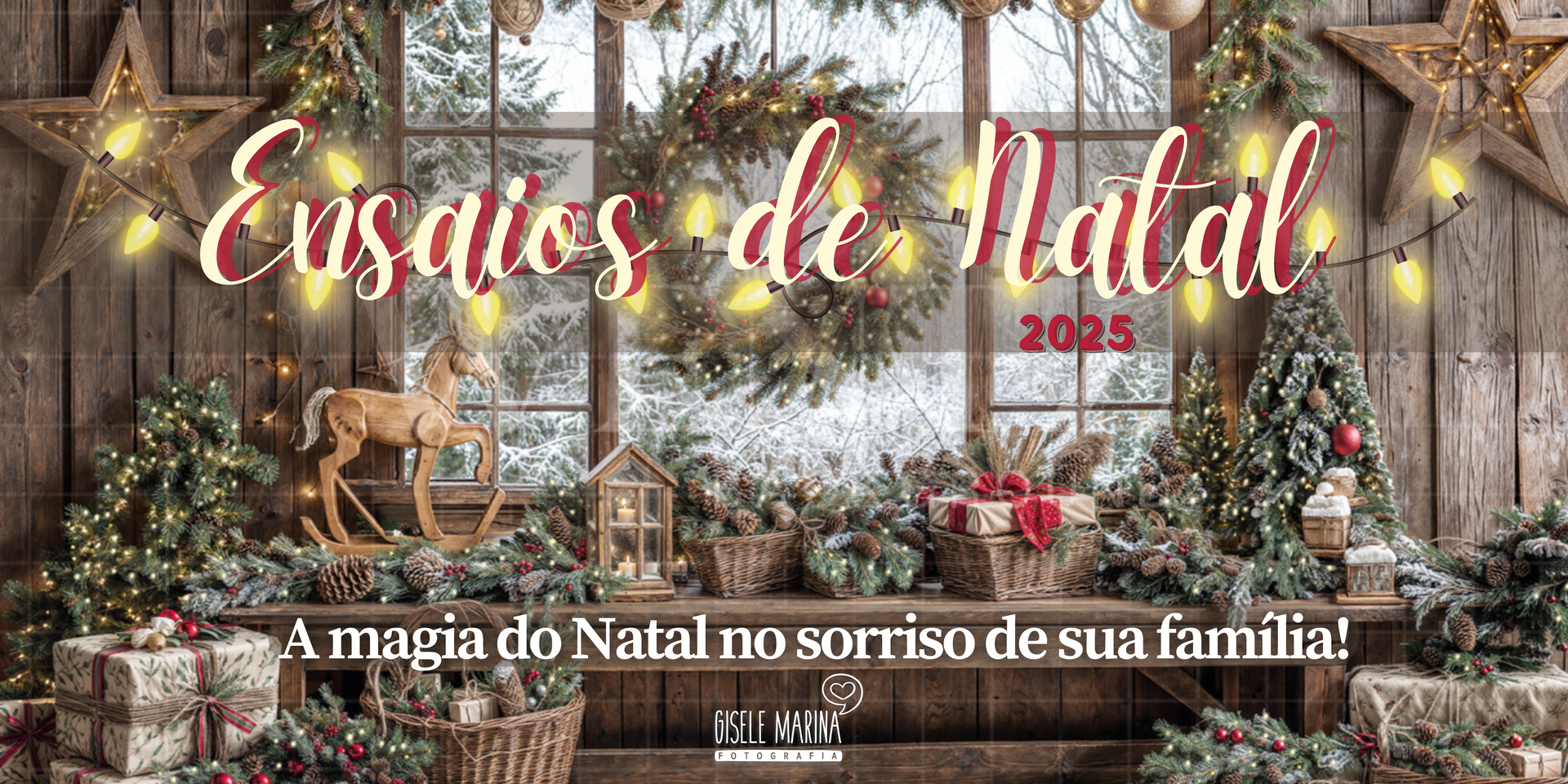 Em 2025 você já entra no clima natalino assim que pisa os pés nesse cenário mágico. O ambiente rústico e recheado de lindos enfeites e a iluminação suave dão um ar de paz e tranquilidade, perfeito para curtir essa época tão especial. E não podemos esquecer das muitas luzes de Natal que iluminam cada canto, criando um ambiente mágico que vai fazer seu coração aquecer. Seja para enviar cartões personalizados, decorar sua casa ou simplesmente celebrar a alegria da época, nossos ensaios são a escolha perfeita! Você e sua família poderão sentir o espírito natalino e se encher de alegria!